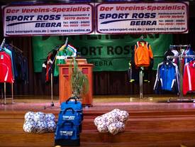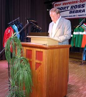Herr Roß sen. ging in seiner Ansprache zunächst auf das vergangene Geschäftsjahr ein, das für seine Firma sehr erfolgreich war. Erfreulich sei, daß immer neue Vereine den Weg nach Bebra finden. "Wenn Vereine aus Erfurt, ganz viele aus dem Raum Eisenach und dem Werra-Meißner-Kreis seit vielen Jahren zu den Stammvereinen zählen, sei das sehr erfreulich und zeige, daß das Haus etwas ganz Besonderes und Entscheidendes zu bieten hat". Neben der guten Auswahl, der perfekten Beratung und guten Vereinsrabatten sei das der einmalige SERVICE, den sein Haus wie kein anderer Mitbewerber im Raum Nordhessen bieten kann.